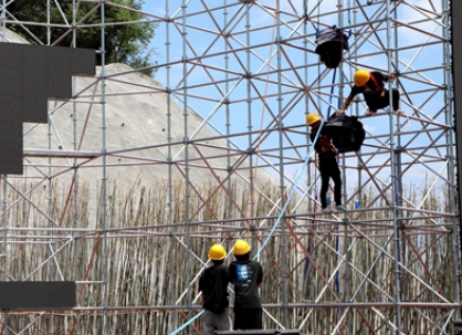 而現場燈飾及音響的安裝工作均由舞臺電動葫蘆吊運至桁架安裝點,工作人員在沒有任何負載的情況下輕松完成這些設備的安裝,既保證了工作的進展速度,也保證了每一位工作人員的人身安全,很快整個舞臺的大致輪廓便已經形成。
